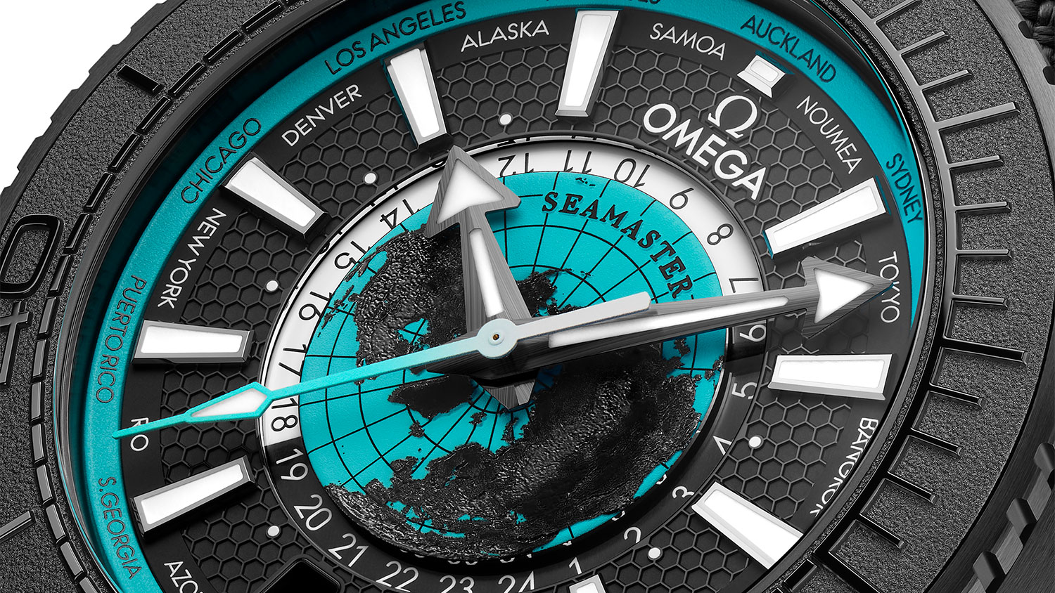 De Omega Seamaster Planet Ocean Worldtimer laat zien dat een wereldtijdcomplicatie niet exclusief hoeft te zijn voor dress- of travel watches. Omega combineert hier het concept van een wereldklok met de robuuste basis van de Planet Ocean-lijn: een professioneel duikhorloge dat gebouwd is om te presteren onder druk, letterlijk en figuurlijk.
