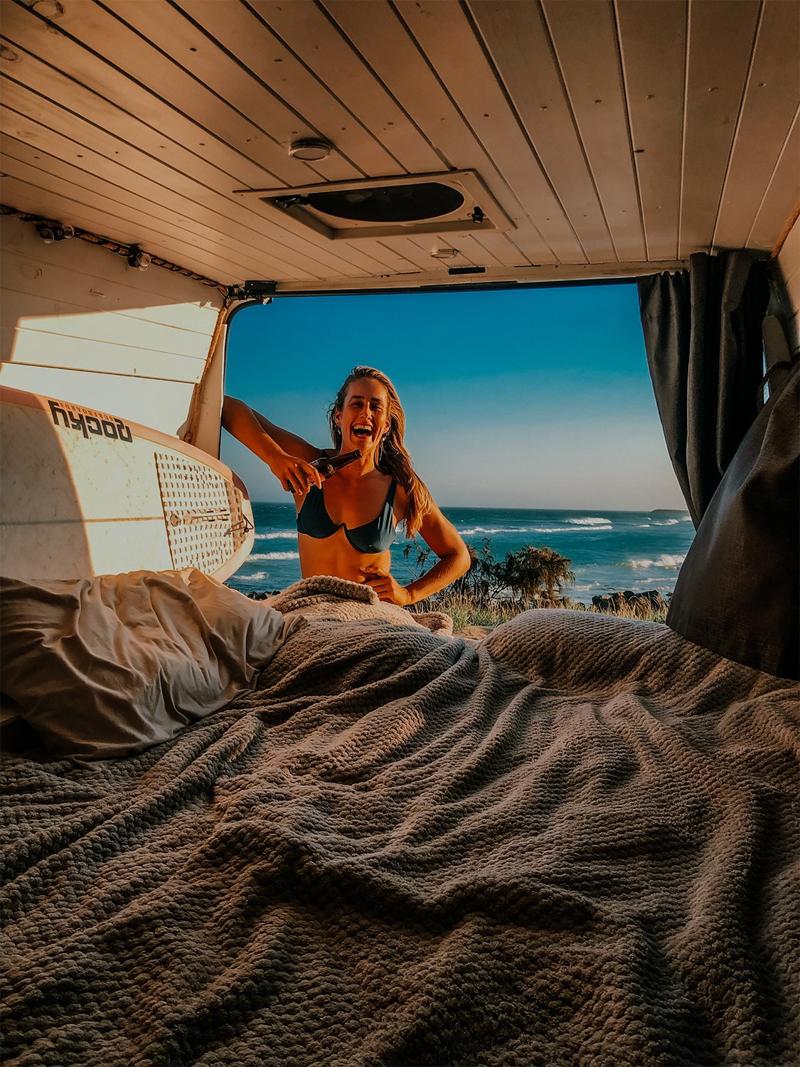 Dit was eigenlijk nooit mijn grootste droom maar ik ben behoorlijk open-minded en het kwam zo op mijn pad! Ik wilde wel #vanlife een keer proberen. Toen ik zag dat het kopen van een van goedkoper was dan huren kocht ik eerst mijn kleine van. Dat vond ik geweldig en ik wilde een grotere van. Dit was superduur dus ik besloot zelf te gaan bouwen haha! Het is mijn beste lifestyle ooit tot nu toe geweest. Ik ben heel alleen geweest, waar ik aan moest wennen maar later ging ik dit zo enorm waarderen. Het was heel primitief. Ik douchte op het strand wat heel vaak magisch was maar in de winter ook koud of soms erg druk in de zomer haha.