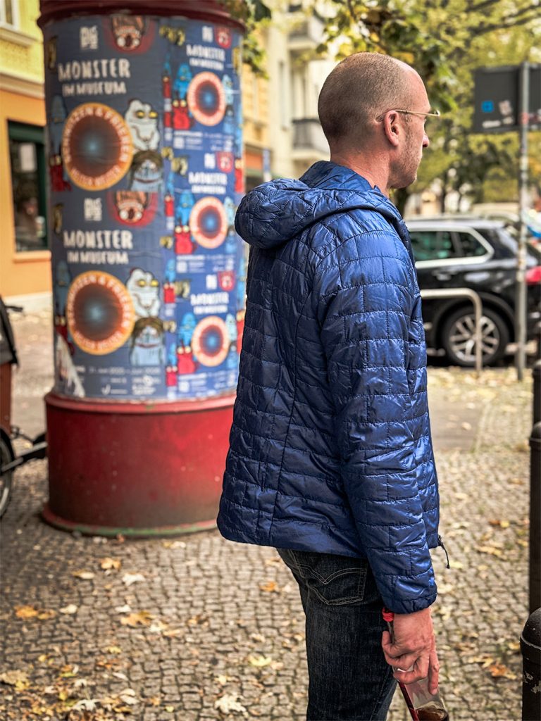 Onderweg in Berlijn valt het gelijk op hoe goed deze jas geschikt is voor het stadse leven. De jas is super licht en door de isolatie met 60g/m² Primaloft-vulling tegelijk ook verrassend warm. En in deze tijd van het jaar zijn de ochtenden en avonden fris, maar de middag is het te warm voor een jas. De Nano Puff stop je dan zo weg in je tas. Ideaal.