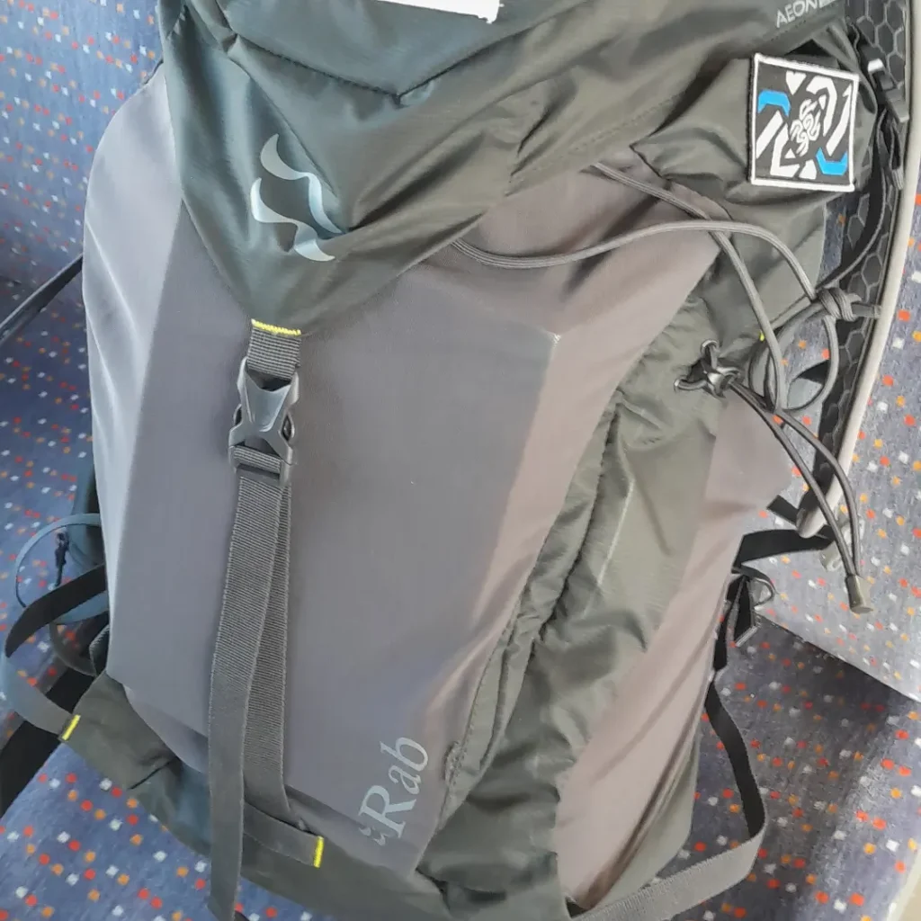De logo’s van Rab zijn op de rugzak geplakt maar laten na verloop van tijd los, net als bij andere producten.