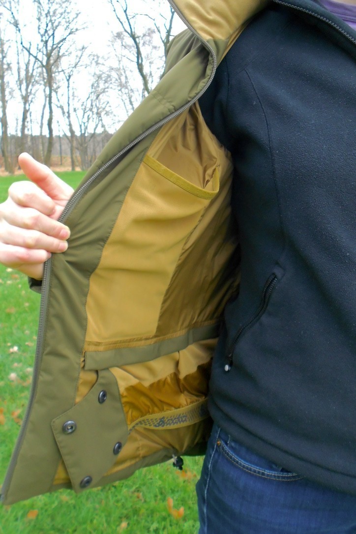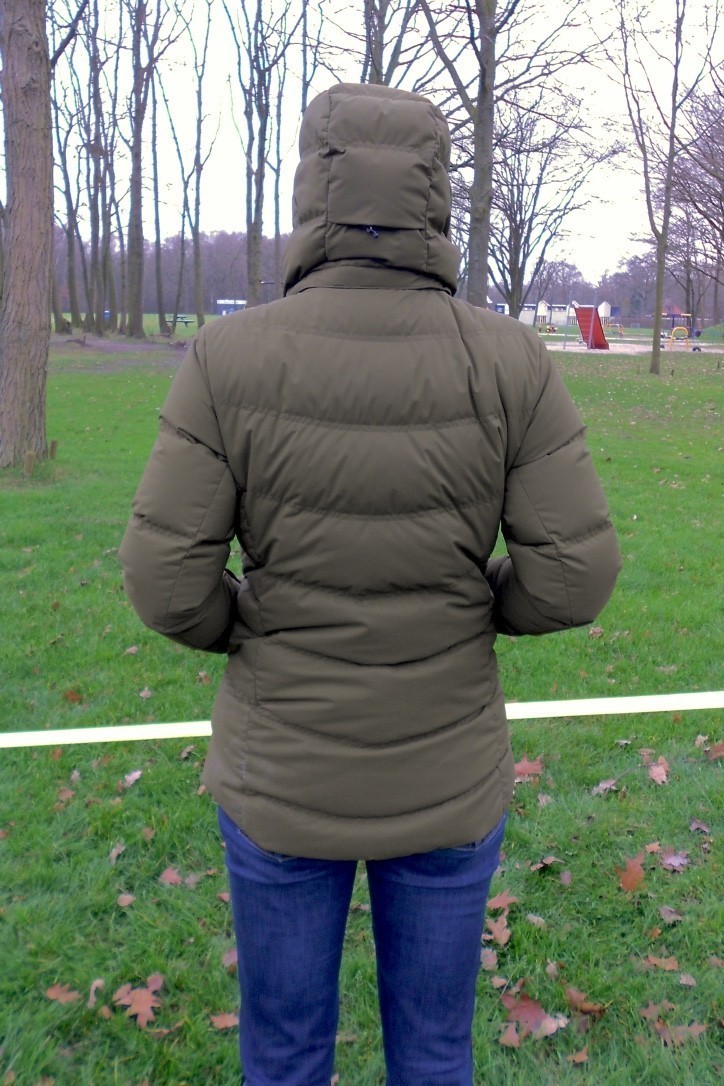 Eenmaal uit de doos gehaald en aan gepast, spreekt de jas mij gelijk aan. De jas oogt vlot, zit als gegoten en je voelt je omgeven door warmte. De jas voelt licht, maar neemt aardig wat volume in beslag. Erg packable is de jas daardoor niet. Gelijk vallen een aantal zaken op: de mouwen van de jas hebben elastische manchetten waardoor de jas perfect afsluit bij de polsen, de jas heeft een sneeuwvanger aan de binnenkant, een binnenzak met rits, een zakje met rits op de linkermouw en 2 zakken voor je handen aan de voorzijde. De capuchon kan er af, maar die heb ik laten zitten. Zoals gezegd, heb ik de jas in dagelijks gebruik getest waarbij ik vooral veel fietskilometers heb gemaakt en op stations heb gestaan. Tijdens de koudere dagen was ik de donzen voering dankbaar. In de zakken aan de voorzijde kan ik gemakkelijk een grote bos sleutels kwijt met daarbij dunne handschoenen en een muts. Genoeg plek dus. Het achterpand van de jas loopt iets langer door waardoor de warmte goed behouden blijft. Desalniettemin bleef ik wel mijn shirt in mijn broek stoppen om te voorkomen dat ik toch koude lucht zou voelen. Normaal gesproken zou je onder deze jas een skibroek dragen waardoor dit niet aan de orde is, mijns inziens. Bij gebruik viel het mij ook gelijk op dat ik gemakkelijk een trui onder de jas aan kan. Dat vond ik prettig. Ik heb ervaring met jassen gehad waar dat moeizaam ging vanwege de voering. Tijdens een fietstocht door de stad bij temperaturen ruim boven nul en het tempo dat ik er op na hield, merkte ik dat het dons inderdaad goed ventileert maar niet goed genoeg voor mij. Ik krijg het dan algauw te warm, begin te zweten maar ik kan er niet voor kiezen om de jas uit te doen omdat het daar dan toch te koud voor is. En, waar laat ik de jas dan? Als ik lagen had gedragen (donsjas met aparte hardshell jas) had ik vermoedelijk minder problemen met de warmte die ik kwijt moest. Immers, dan kun je jezelf van een laag ontdoen maar behoud je wel de bescherming tegen, bijvoorbeeld, regen. Voor mij is dit wel een nadeel aan deze jas. Ik geef de voorkeur aan het werken met lagen: donsjas gescheiden dragen van een hardshell jas. In de specs bij de jas staat dat de jas 750 cuin bevat. Zoals gezegd, ervoer ik de jas al als zeer aangenaam en comfortabel. De cuinwaarde verbaasde mij daardoor niet. Vooral wanneer ik naar huis moest fietsen na het trainen in de boulderhal of wanneer ik na een lange treinreis koud uit de trein kwam en in de kou naar huis fietste, merkte ik hoe warm de jas is. In mijn ogen daardoor een prima jas voor na het sporten om warm te blijven. De jas is winddicht en waterafstotend. Ook bij harde wind bleef ik mij comfortabel voelen in de jas. Tijdens een stortbui had ik het geluk onderweg te zijn naar huis. Ik dacht: “Ha, nu eens kijken hoe de jas zich houdt.” Met plezier keek ik hoe de druppels op de jas bleven liggen en eraf rolden. De jas bleek zich uitstekend te houden in dit hondenweer! Toen ik even later weer een regenbui moest trotseren, fietste ik glimlachend rond: ik bleef droog én warm! Over bescherming tegen regen gesproken, de capuchon heb ik daarbij veel gebruikt. Pas toen ik de capuchon nodig had kwam ik erachter hoe ik het elastiek in de capuchon kon verstellen. Aan de zijkant van de kraag en achterop de capuchon vind je trekkoorden. Het aantrekken en hierdoor instellen van de capuchon gaat vrij eenvoudig zodra je door hebt hoe je er aan kan trekken. Het kostte mij in eerste instantie wat oefening. Bij mijn andere jassen gaat dit eenvoudiger. De capuchon kan verwijderd worden door een rits en een paar drukknopen los te maken. Dit gaat gemakkelijk en vlot. Net zoals het opnieuw bevestigen van de capuchon. Doordat ik de jas niet in een skigebied kon testen heb ik de sneeuwvanger niet getest. De sneeuwvanger is verwijderbaar met een rits. Bij gebruik kun je een sneeuwvanger sluiten met drukknopen. Het elastiek in de sneeuwvanger zorgt ervoor dat de sneeuwvanger nauw sluit. Iedere rits heeft ritskoordjes waardoor je gemakkelijker grip krijgt op de rits bij gebruik van handschoenen. Ik vind de ritskoordjes vrij klein. Met dunne handschoenen voor het hardlopen ging het prima, maar met skiwanten zou het niet werken. Daarbij heeft de centrale rits aan de voorkant een beschermrubber sleeve. Vermoedelijk om te voorkomen dat het knoopje gaat schuren aan je kin. Geen andere rits heeft namelijk een beschermrubber sleeve of een metalen lipje.Pluspunten